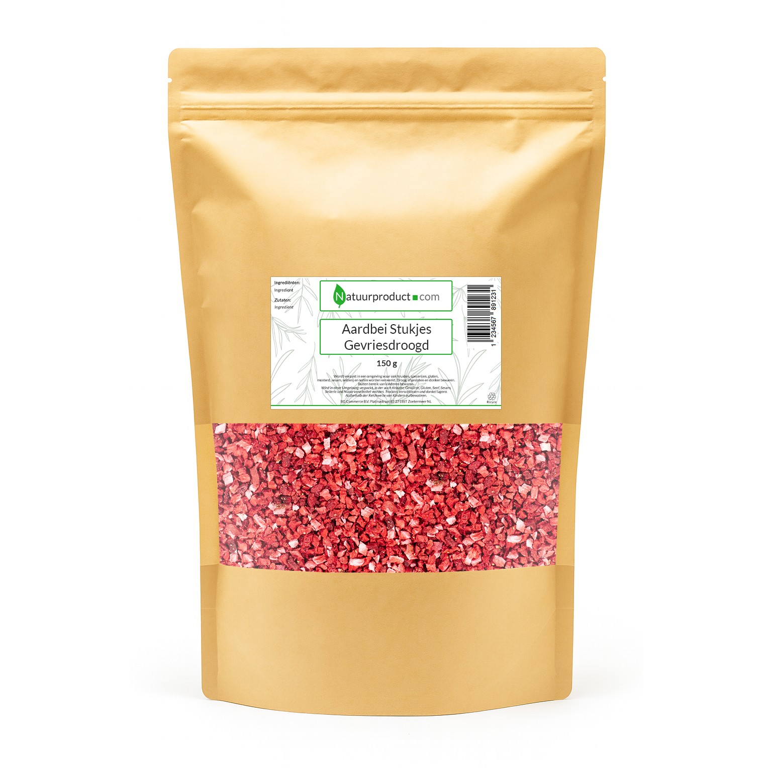Wij leveren deze gevriesdroogde Aardbeienstukjes in een handige, hersluitbare stazak zodat je het optimaal luchtdicht kunt bewaren, zonder verlies van kwaliteit.