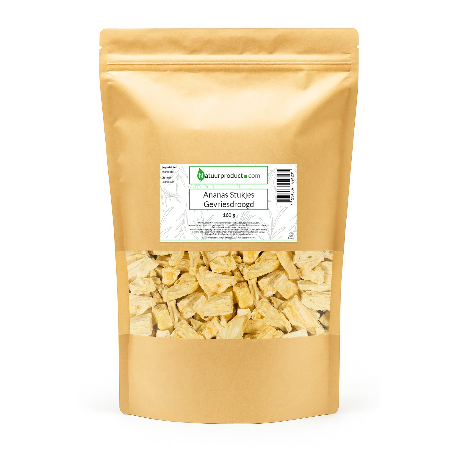 Dankzij deze unieke methode, gecombineerd met het gebruik van uitsluitend de allerbeste, volledig rijpe Ananassen, zijn onze gevriesdroogde Ananas stukjes heerlijk zoet, zeer rijk aan voedingswaarden en lekker knapperig. Ze zijn 100% natuurzuiver en dus gegarandeerd vrij van toevoegingen. De optimale combinatie van lekker en gezond eten! Geniet van de prachtige smaak in een luchtige textuur die smelt op je tong. Perfect als gezonde snack, een crunchy toevoeging aan granola of als voedzaam snoepje. Direct klaar voor gebruik!