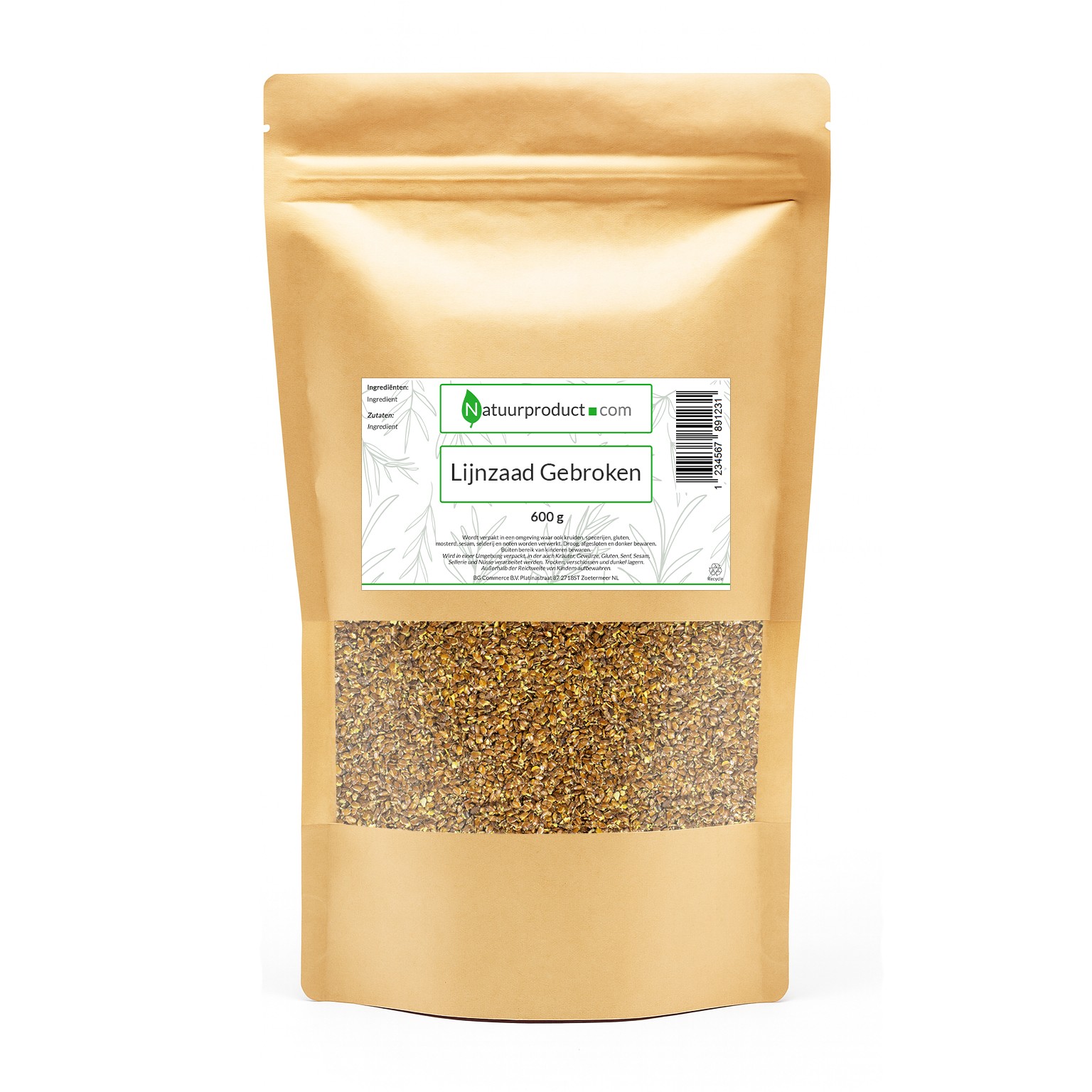 Precies zoals het gebroken lijnzaad hoort te zijn, fijn verpakt in de herlsuitbare zak!