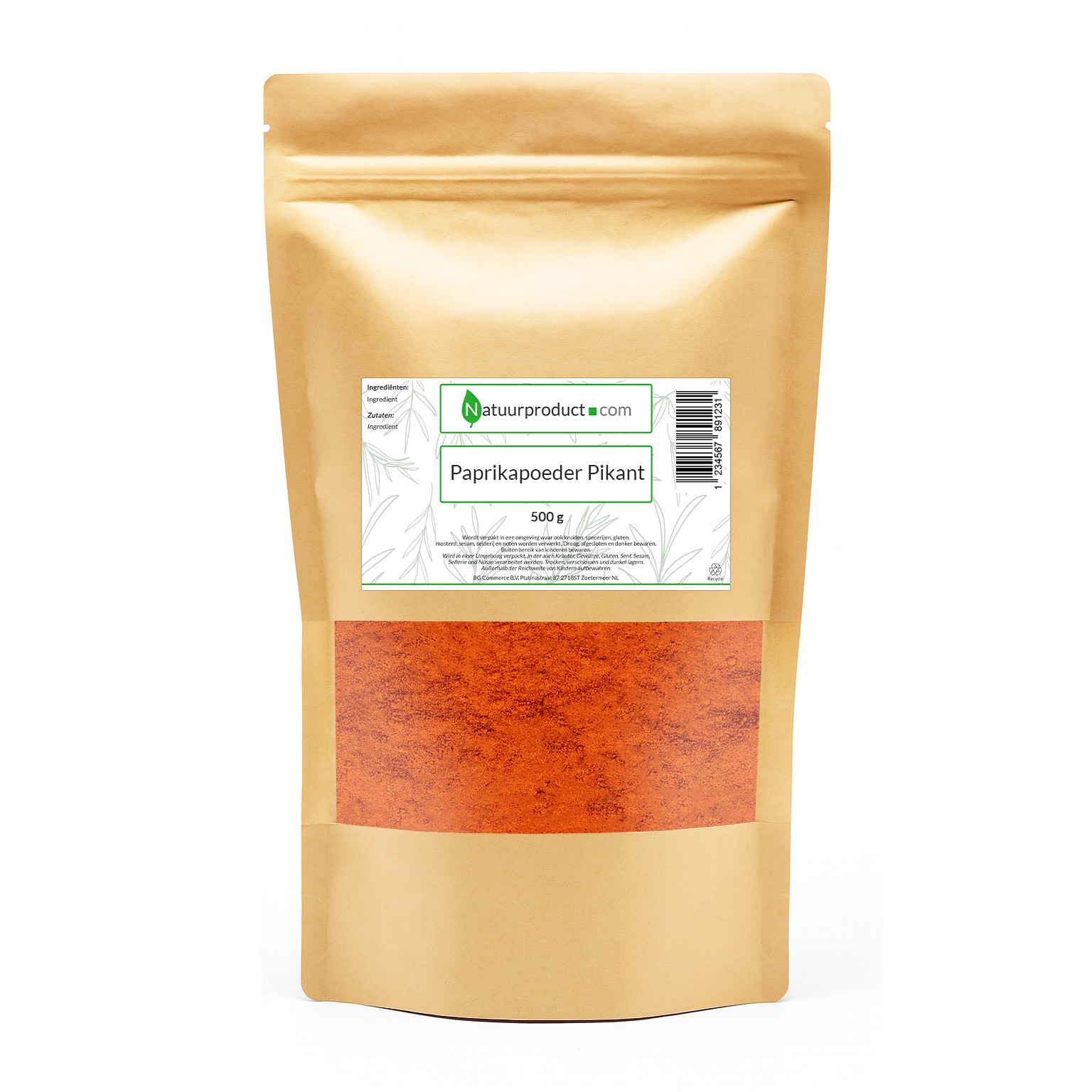 Ingrediënten: Paprikapoeder pikant (Capsicum annuum).