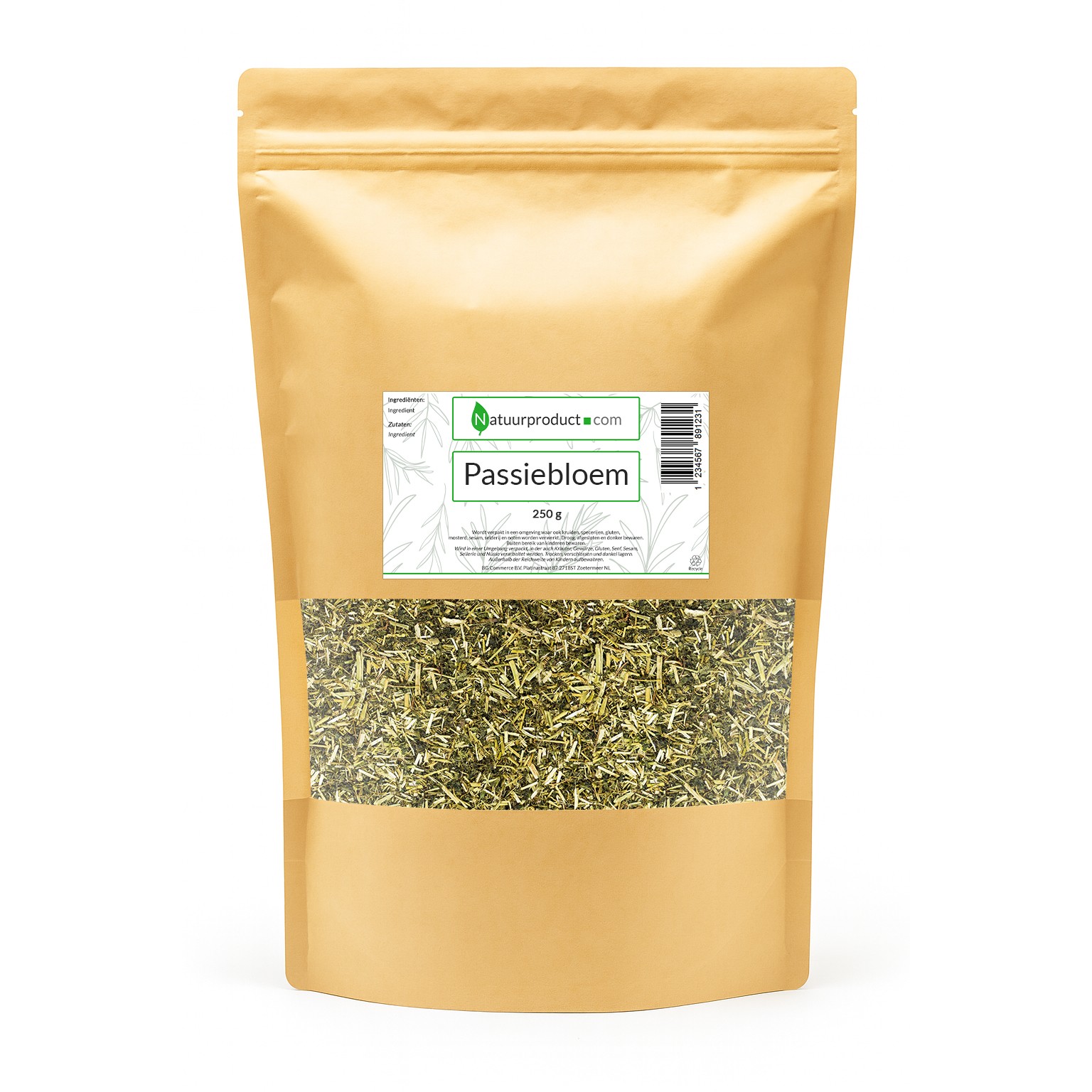 Deze Passiebloem wordt geleverd in stevige, hersluitbare verpakkingen die de kwaliteit en inhoudsstoffen perfect beschermen, ook bij langdurig bewaren.