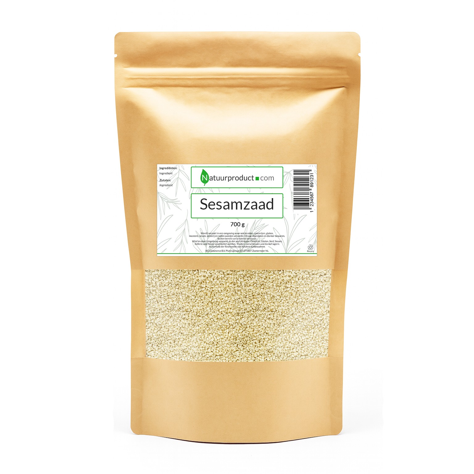 Ingrediënten: 100% Sesamzaad gepeld (allergeen).