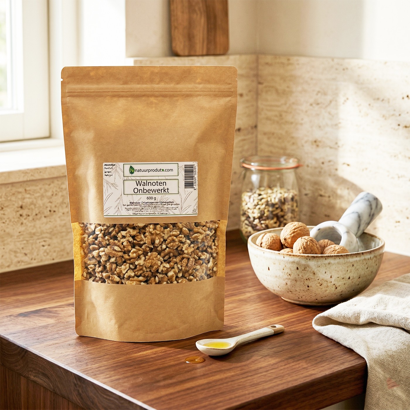 Ongebrande Walnoten zijn een voedzaam tussendoortje en zijn ook lekker in salades en gerechten.