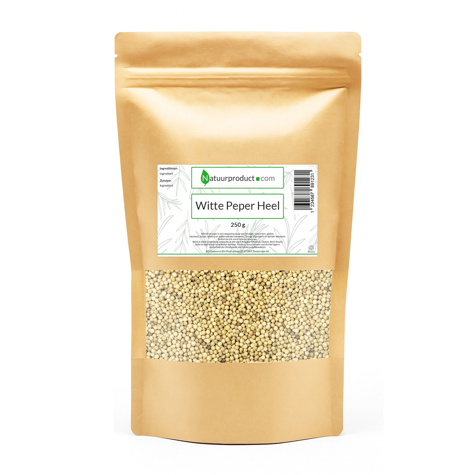 Ingrediënten: 100% Witte peper (heel).